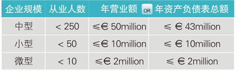 SME(微型,小型及中型企業)是REACH法規下特有施惠于微型、小型及中型企業的政策。為了將SME企業規模定量化、標準化,歐盟委員會從從業人員以及年營業額或資產負債表總額兩個角度,對企業規模進行了劃分,具體如下: