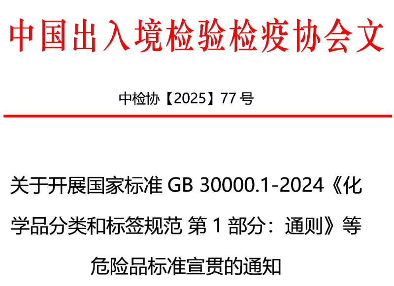 為深入學習貫徹習近平總書記關于安全生產重要指示批示精神,規范化學品行業技術要求,進一步提高危險品從業人員安全技術水平,中國出入境檢驗檢疫協會將于2025年12月2日在廈門市舉辦強制性國家標準GB 30000.1-2024《化學品分類和標簽規范 第1部分:通則》和團體標準T/CIQA 118—2025《危險貨物運輸條件鑒定機構安全作業要求》 等危險品標準宣貫,活動將邀請標準主要起草人解讀標準的編制背景、起草過程、技術要求及其與被替代標準的差異等。
