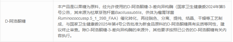 2025年7月2日(2025年第4號公告),D-阿洛酮糖首次作為新食品原料正式獲批,公示了兩種不同的生產工藝:
