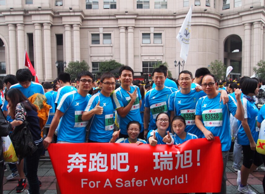 2014年11月2日上午8時,萬眾期待的2014杭州國際馬拉松在黃龍體育中心廣場鳴槍開跑。杭州瑞旭產品技術有限公司12名運動員,高舉公司旗幟,和3萬多名海內外運動員一起,迎著朝陽,體驗一把“running man”的感覺。