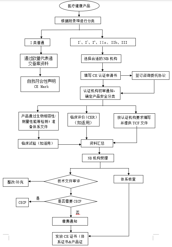 歐盟醫療器械分四類(I,IIa, IIb,III), 法規規定分類規則(附錄8),由制造商按照規則進行分類。低風險由制造商自我聲明,中高風險需要公告機構審核發放CE證書,高風險產品可能還需要主管當局或者歐盟對臨床進行審核。具體見下表: