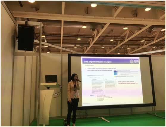 作為本屆展會的重要組成部分,針對不同行業主題的“化學品法規監管服務研討會”,“農化產品展望研討會”和“特種化工行業前景展望研討會”也受到了來訪企業的廣泛關注。瑞旭技術工業化學品部高級法規咨詢師莊妍赟有幸受邀成為演講嘉賓,在REACHReady舉辦的“化學品法規監管服務研討會”分會場上做有關“Updates on GHS in Asia-Pacific countries(亞太GHS最新進展)”的演講報告。她與大家分享了亞洲10國最新的GHS動態進展,并詳細解讀了中、韓、日等熱門國家的GHS法規標準及制作要求。此話題吸引了與會企業的高度關注,多國企業在會后與我們的瑞旭專家展開了進一步的交流討論。