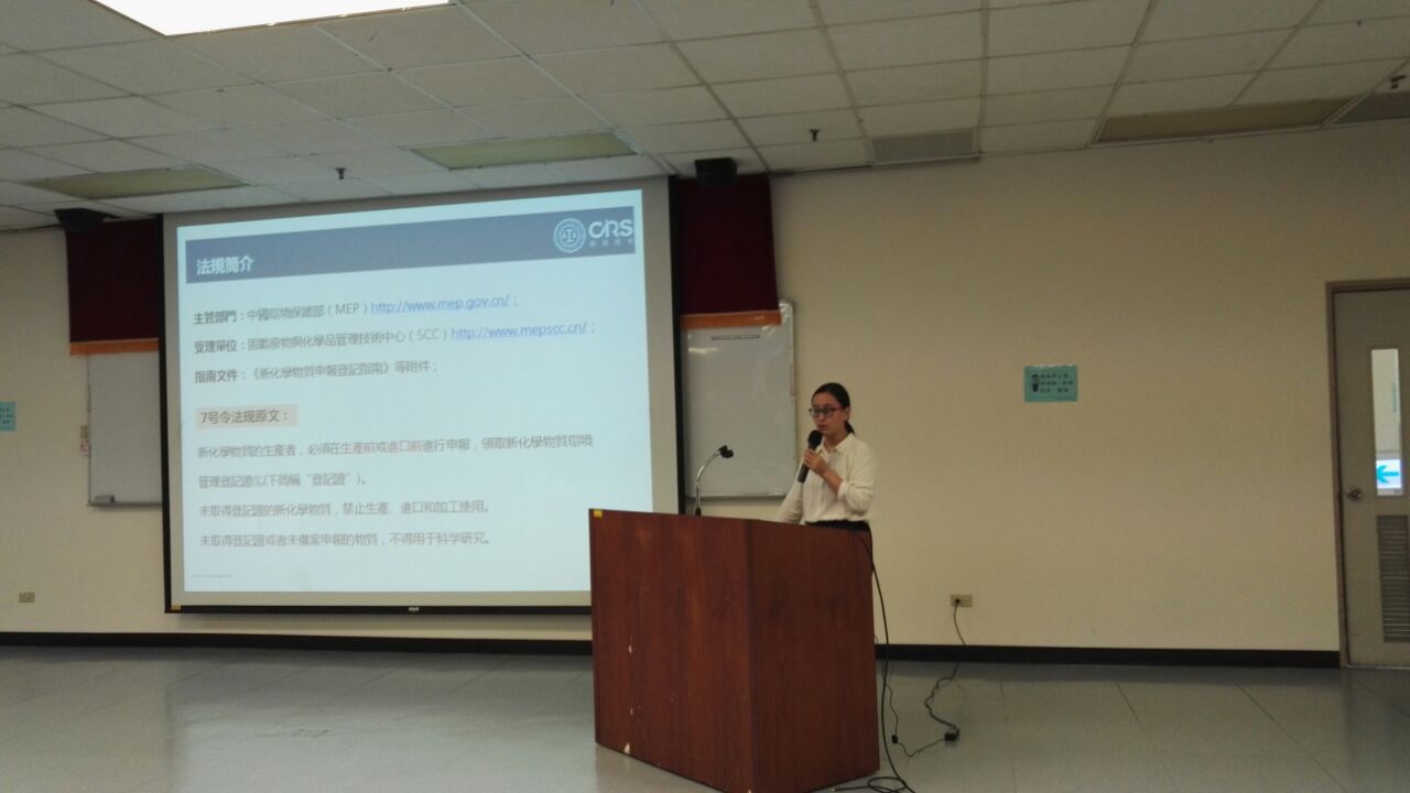 會上佳辰科技的吳建興總經理就“臺灣化學品法規管理與化學物質登錄”進行了介紹并為大家分析了臺灣化學品管理法規的發展歷程,未來發展動向及監管趨勢;瑞旭技術亞太區法規主管宋君和高級法規咨詢師王悠然分別向與會人員做了“中國大陸化學品法規管理概述,最新進展和合規建議”和 “中國大陸新化學物質環境管理辦法應對經驗及2016年指南文件草案剖析”兩個主題報告。