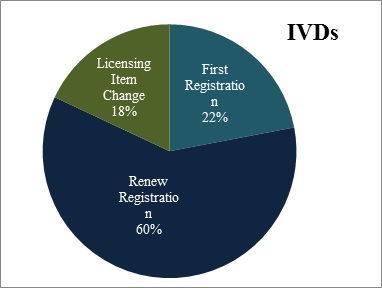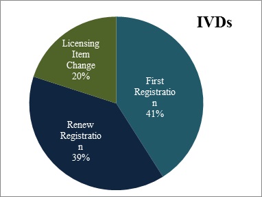 For IVDs, CFDA has approved 514 first registration applications, 479 renew registration applications, and 243 applications of licensing item change.