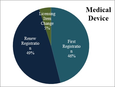 CFDA has accepted 9396 applications of medical device registration, in which: 2402 first registration applications, 5105 renew registration applications, and 1889 applications of licensing item change. A 6.7% reduction compared to the application number of 2014