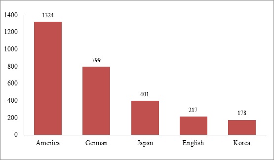 Distinguished by registration form, first registration application number is 341, account for 14%; renew application is 1575, 64%; and licensing item change application is 535, 22%.