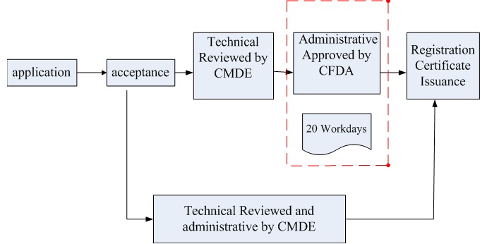 In accordance with the CFDA Decision, Center for Medical Devices Evaluation (CMDE) will represent CFDA to approve the following administrative approval items: