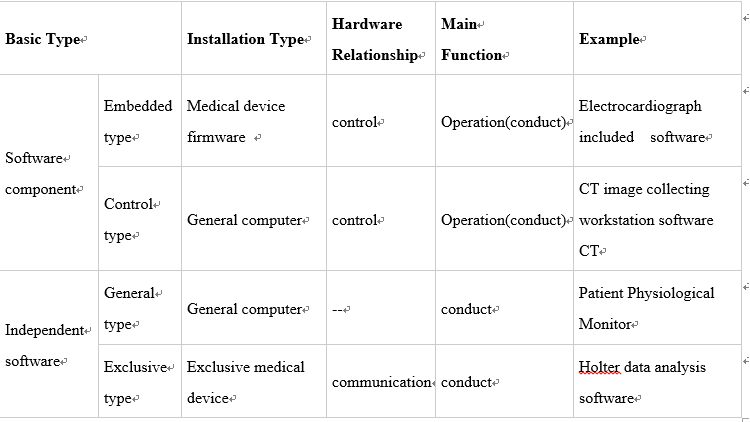 Medical device software includes software components and independent software. Software component is a part of the medical device. However, independent software itself works as medical device